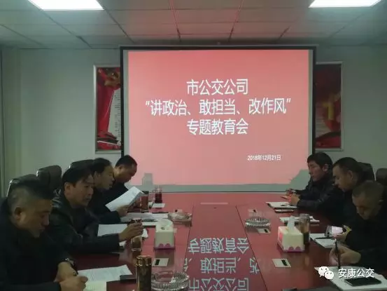 12月24日上午,市公交公司黨委召開“講政治、敢擔(dān)當(dāng)、改作風(fēng)”專題教育會,黨委書記、董事長張曉強(qiáng)主持會議并講話,公司黨政領(lǐng)導(dǎo)班子成員參加會議,中層以上干部列席會議。會議傳達(dá)學(xué)習(xí)了市國資委《關(guān)于在全市工信(國資)系統(tǒng)領(lǐng)導(dǎo)干部中開展“講政治、敢擔(dān)當(dāng)、改作風(fēng)”專題教育實(shí)施方案》、市紀(jì)委《關(guān)于集中開展違規(guī)收送禮金問題專項整治的工作方案》《關(guān)于集中整治形式主義、官僚主義的工作安排》等文件。
